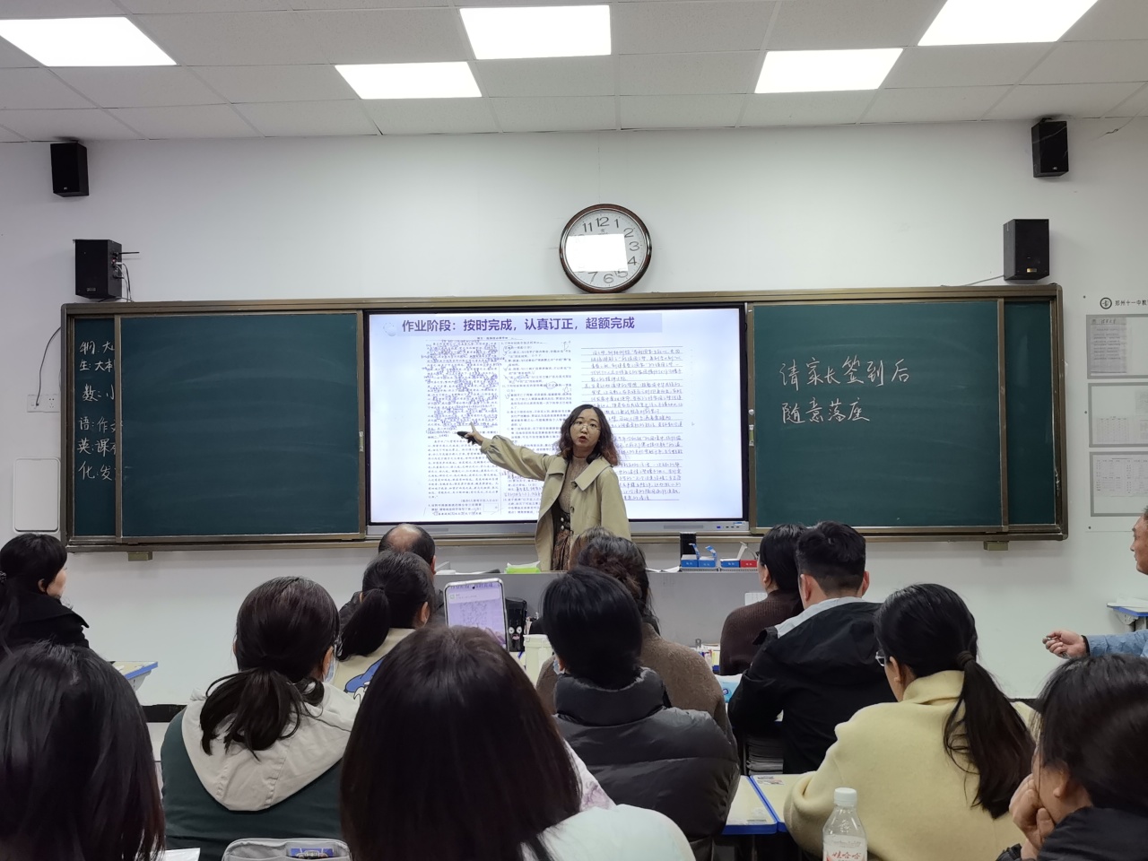 在家庭教育指导环节,会议聚焦“电子产品使用”与“亲子沟通”两大现实议题。班主任建议,家长宜与孩子共同制定电子产品使用规则,注重培养自律意识,营造理性、健康的数字生活环境。同时,鼓励家长给予孩子高质量的陪伴,成为耐心的倾听者和温暖的支持者,以真诚的沟通跨越代际隔阂,陪伴他们平稳度过青春期。各学科教师也结合学科特点,为家长提供了具体、可行的学习辅助建议。