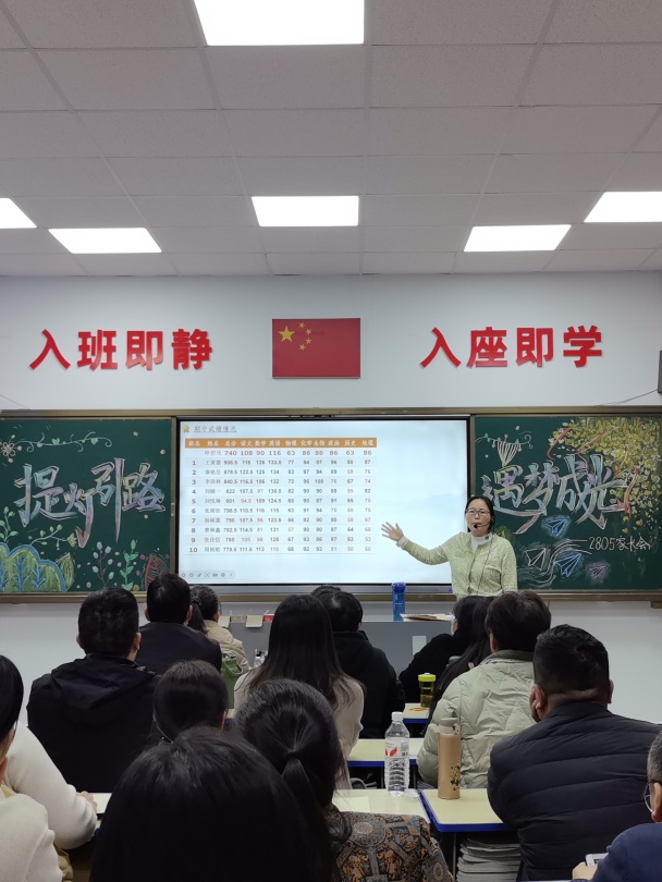 会议伊始,班主任系统分析了期中考试成绩,从多维度解读数据、研判学情,帮助家长全面了解班级整体情况与学生的阶段性表现。班主任指出,考试的意义不仅在于分数,更在于“诊断”与“激励”。学校引导学生理性看待成绩,聚焦知识薄弱点、优化学习方法、提升时间管理能力,从而明确前进方向,将每一次挑战转化为成长的契机,逐步培养积极反思、自主规划、持续进步的学习品质。